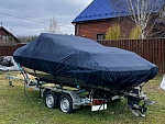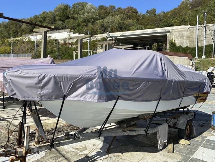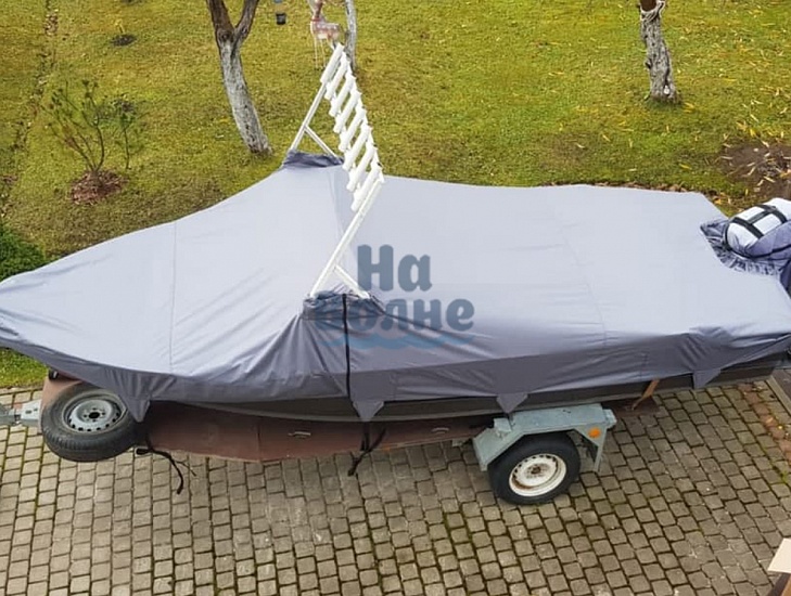 Полная защита: Чехол полностью закрывает лодку до водной линии. Вшитая стропа по периметру и стропы крепления к прицепу спереди, по бокам и сзади обеспечивают надёжное закрепление чехла во время транспортировки и предотвращает попадание внутрь пыли и влаги.